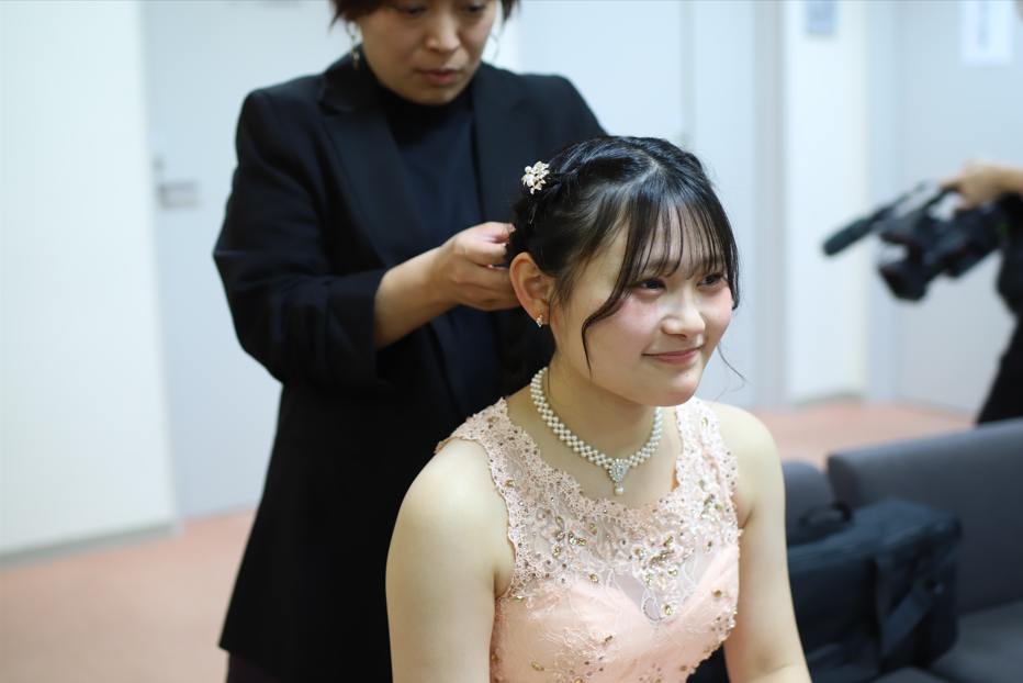舞台裏の控室では、準備に追われながらも、出番が終わった生徒への労いの言葉や、次の出番の生徒への励ましの言葉が飛び交っておりました。