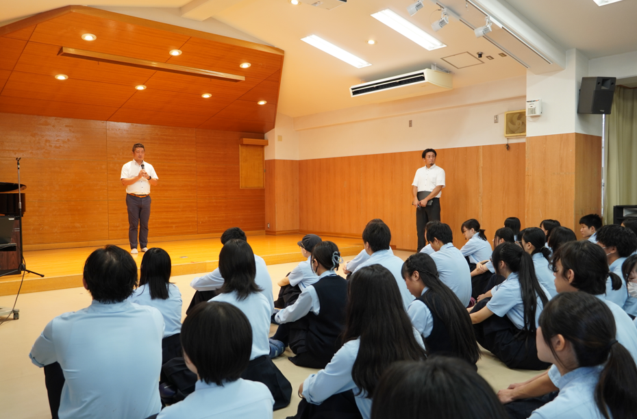本日は夏休み明けの始業式がありました。始業式では学校長からのお話や夏休み中にあった公募展などの表彰がありました。