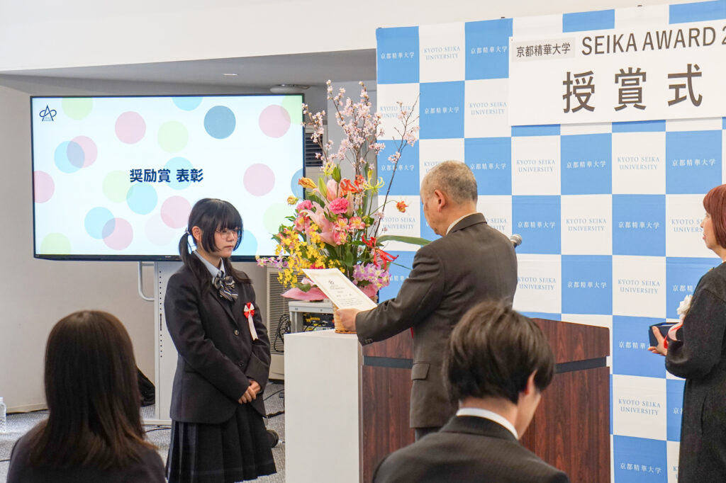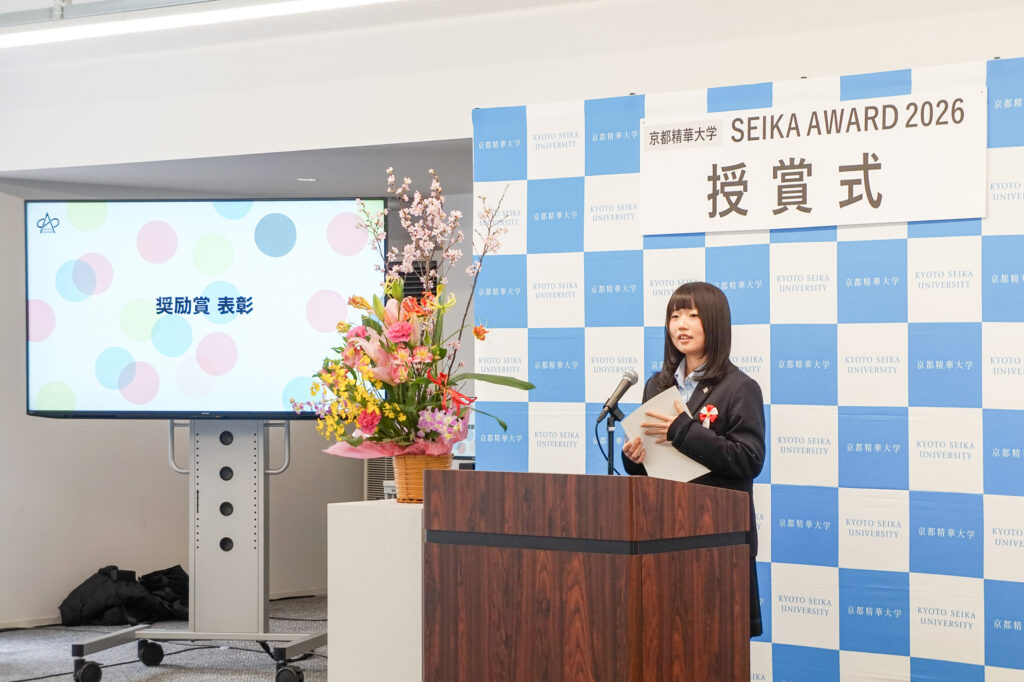 京都精華大学が主催する「SEIKA AWARD 2026」で本校の生徒3名が入選し、内2名が奨励賞を受賞しました。3月15日に京都精華大学で執り行われた授賞式の様子をご紹介します。